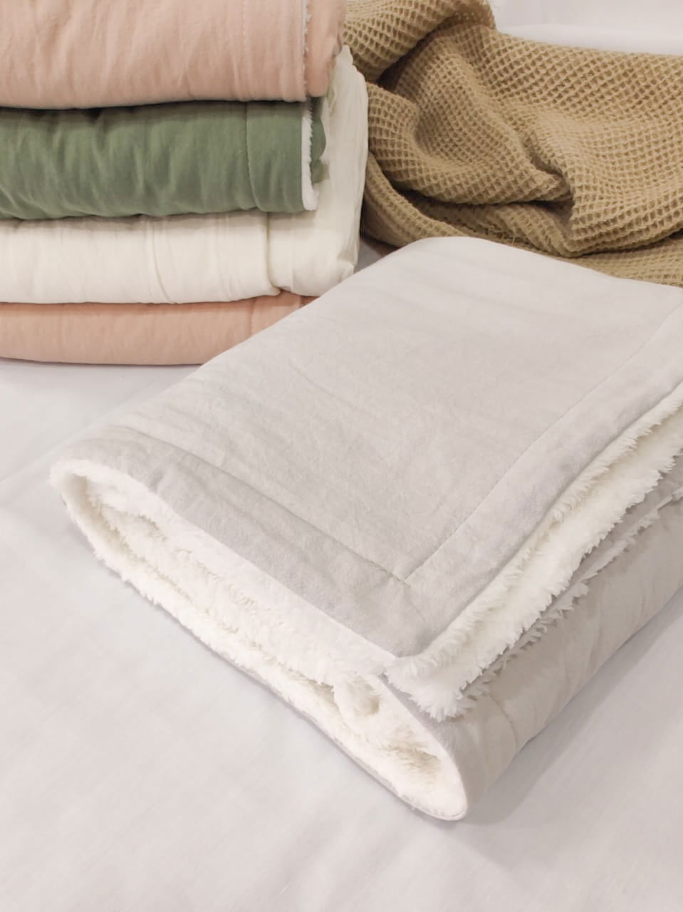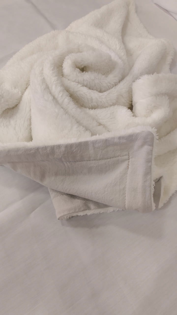 Mantita de corderito doble faz super suavecito, mide 75 cm por 75 cm.
