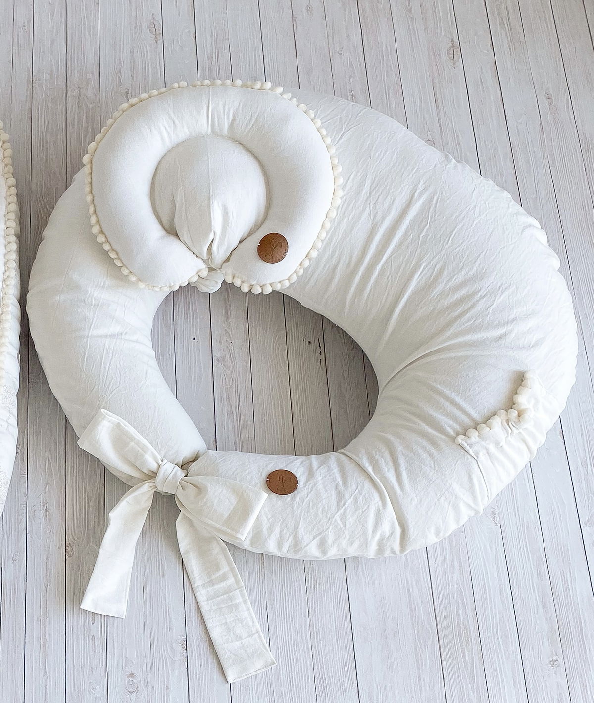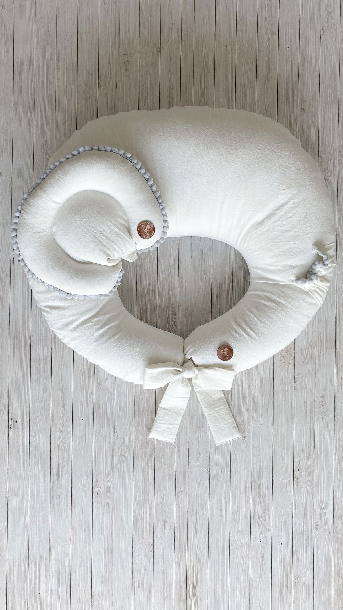 Almohadita tipo cervical pero con apoyo, totalmente movil y desmontable, para que la puedas poner donde te sea más cómoda. Contiene una cinta elástica (forrada en misma tela base) con botón, la cual si quieres se la podes sacar y usarlo en cualquier lado.