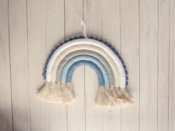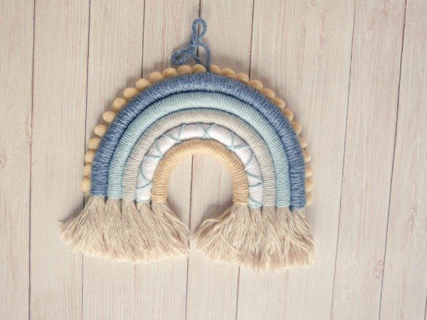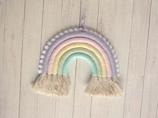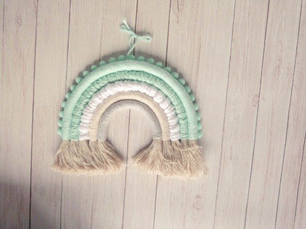 Arcoíris colgante de 5 arcos de 16cm x 16cm, hecho con artesanalmente con técnica de macramé.
