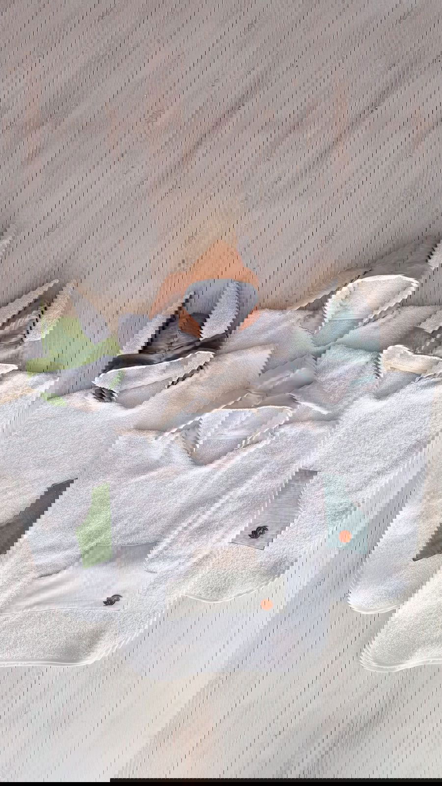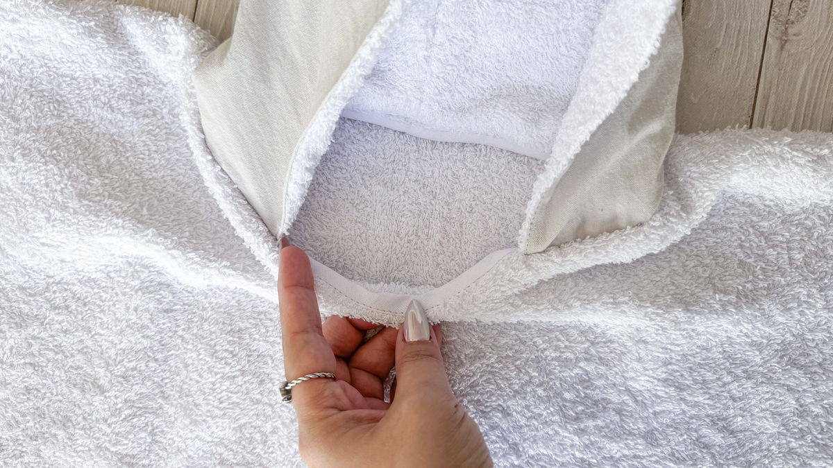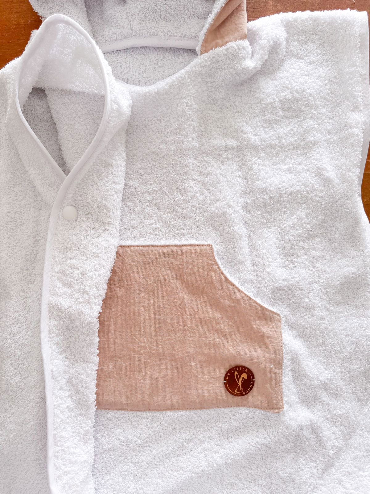 Capucha y bolsillo forrados con toalla para lograr mejor secado y para que estén calentitos.