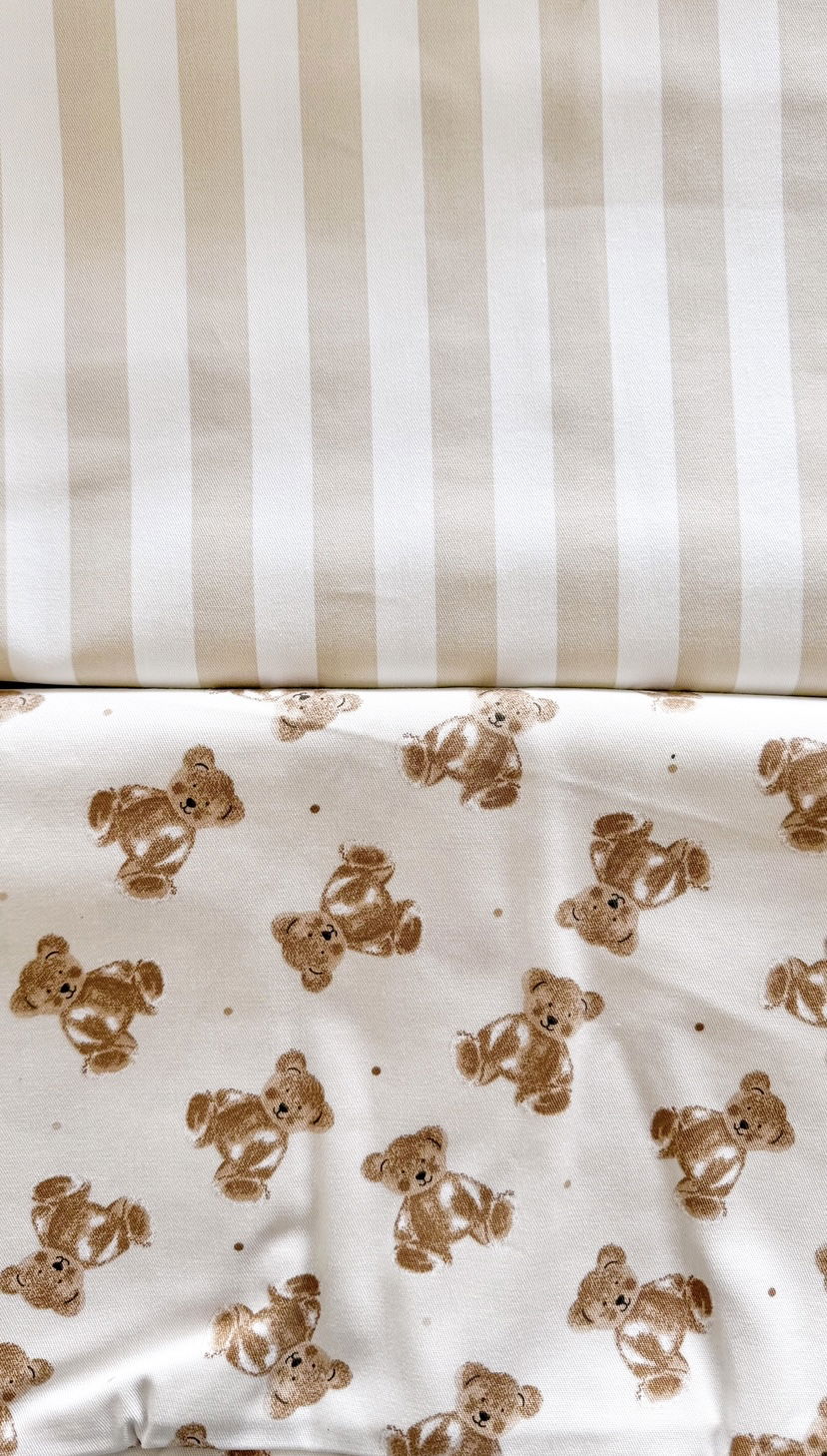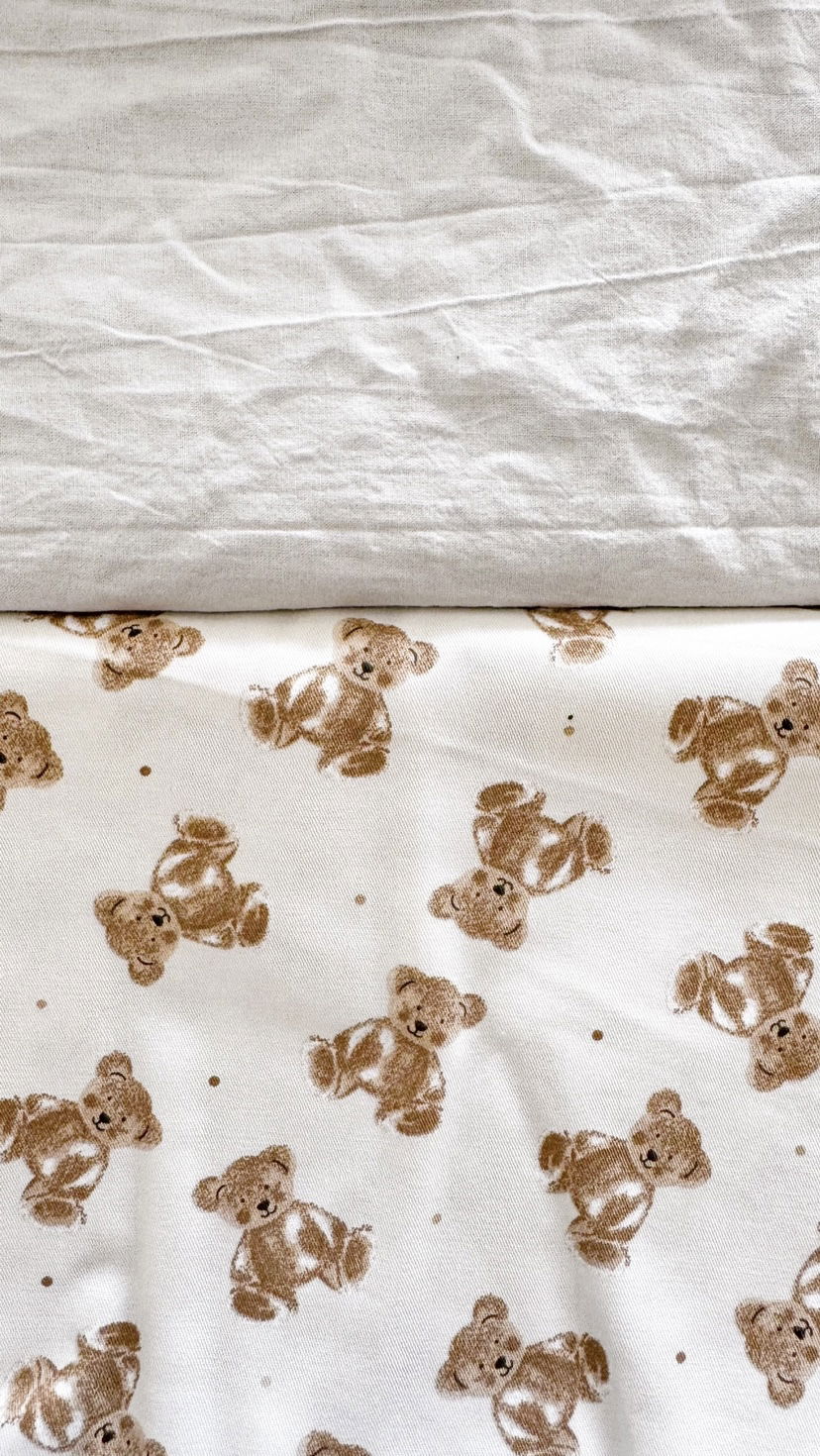 Están hechos de Gabardina 100% Algodon. Rellenos de vellón siliconado para que no pierda su forma.