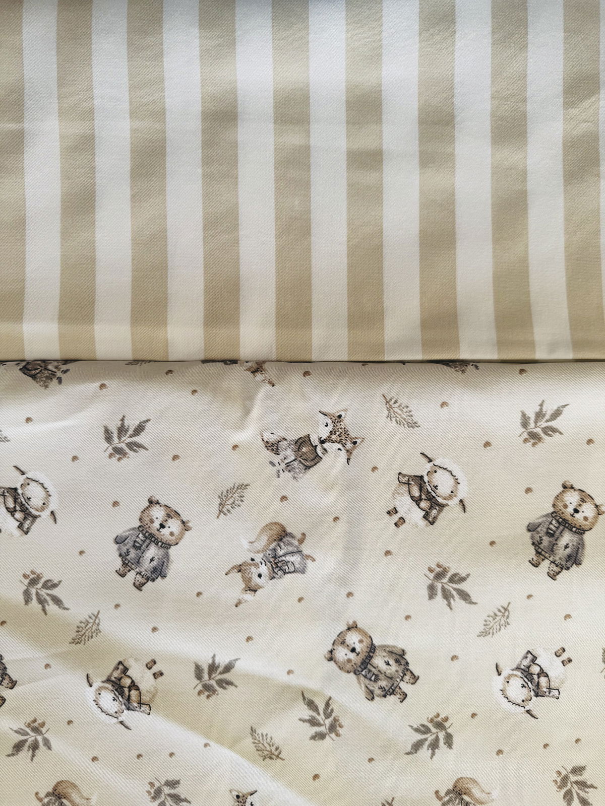 Están hechos de Gabardina 100% Algodon. Rellenos de vellón siliconado para que no pierda su forma.